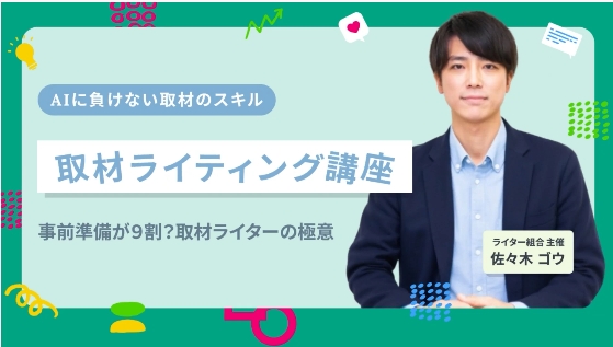 インタビューで情報を集め、記事にしていく「取材ライティング」は、AI時代においても人間が主役になる分野と言われています。